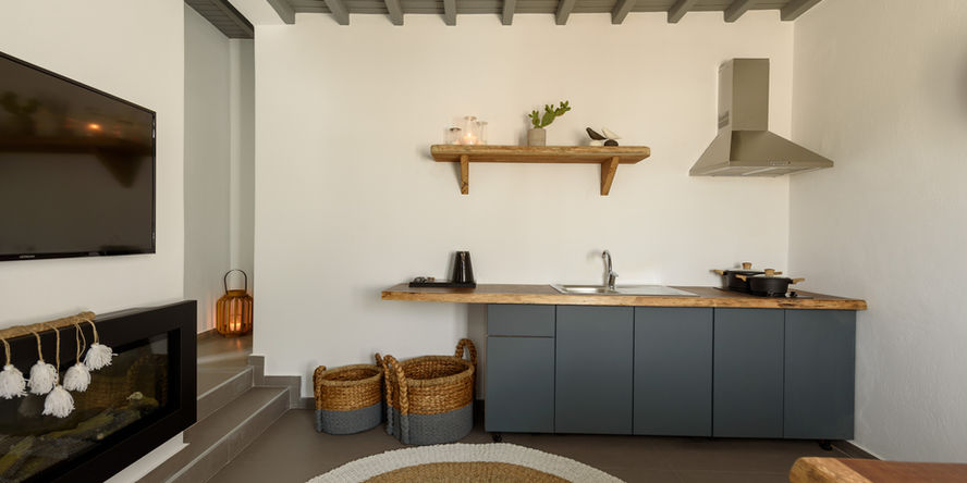 This 2 bedroom villa provides the privacy & tranquility guests seek during their holidays with the comfort they require & with lots of features of a smart house, from lighting to air-conditioning, satellite TV etc. The kitchen - as well as numerous furniture - has been picked from signed brands, while lots of touches have been added by Myconian carpenters offering a unique fashionable elegance.