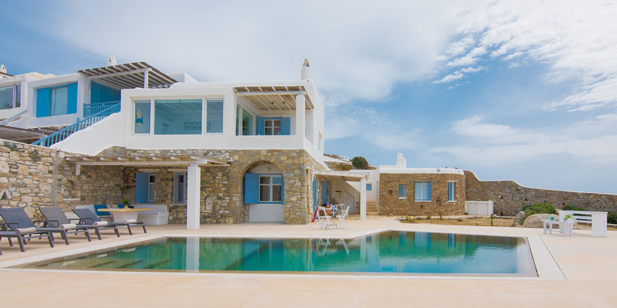 One of the most elegant properties on the island. Located atop Pouli hill in Kanalia area, one of the most famous spots in Mykonos, the villa offers charming outdoor spaces with sensational sunset views over the Aegean Sea and the tiny island of Delos.