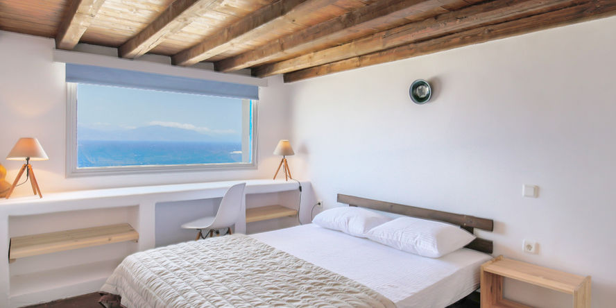 Located atop Pouli hill in Kanalia area, one of the most famous spots in Mykonos, the villa offers charming outdoor spaces with sensational sunset views over the Aegean Sea and the tiny island of Delos.
